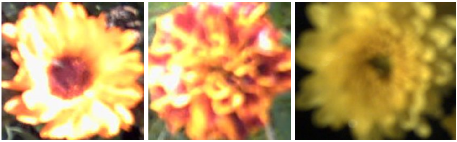 L’objectif est de réaliser un classifieur bayésien permettant de classer les images de trois espèces de fleurs (ne recopiez pas les images, afin de préserver votre quota). Lancez le script recup_donnees.jl, qui affiche des images de pensées, d’œillets et de chrysanthèmes. Vous constatez que ces images n’ont pas toutes la même taille.